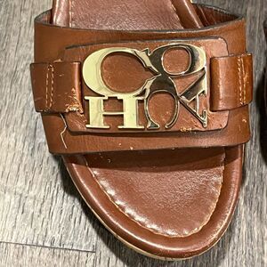Step out in style with these Coach brown leather sandals. Perfect for any occasion, these sandals offer both comfort and elegance.