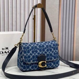 A fashionable bag that combines Coach's classic iconic pattern, popular denim material and high-quality smooth leather!