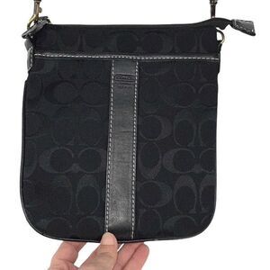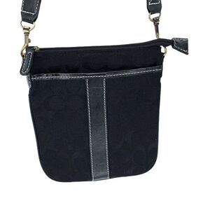 Coach Canvas Logo Embossed Crossbody Bag Pouch Black
