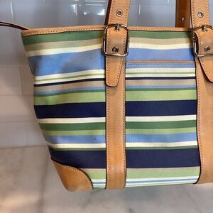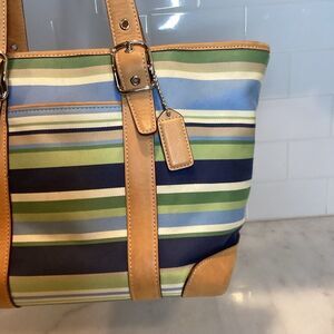 Coach Canvas Striped Medium Hampton Tote