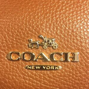 Coach bag, Coach shoulder bag, pebbled leather, cognac color bag, brown bag, adjustable strap,