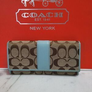 Coach Classic Logo Bifold Wallet. Wallet is used but in good condition. Blue interior. Lots of compartments. Please check the photos for more description and details.