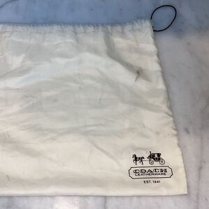 Authentic Coach dust bag in cream sateen material. Features a chocolate brown drawstring. Perfect for storing your collectible Coach bags. Approximate measurements - 19" x 14" Photos are the best description of this dust bag. Please ask questions. Make an offer!