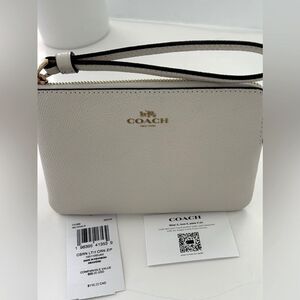 Elegant Coach wristlet in a sophisticated cream color. Perfect for any occasion.