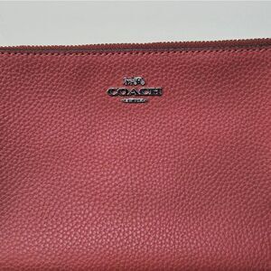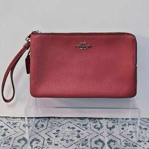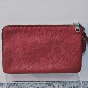 Coach Double Zipper Pocket Wristlet In Musted Red/Rust. EUC