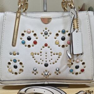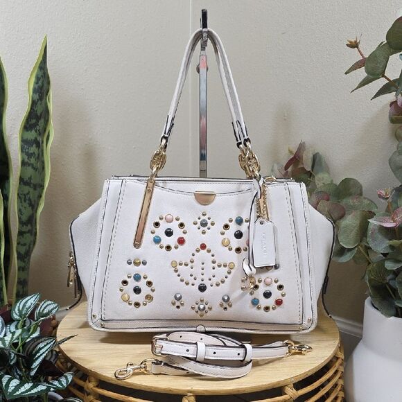 The Dreamer is Coach's new take-everywhere bag, inspired by the endless possibilities of New York City. Crafted in smooth leather, this spacious tote features a three-compartment design, modern hardware and a Signature charm. It's detailed with a folkloric-inspired motif designed in colorful cabochons and rivets.