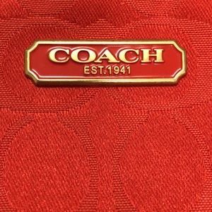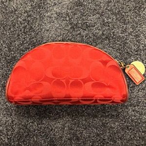 Coach/Estee Lauder red fabric cosmetic pouch. 7”x4”x1”. There is some wear on the trim and tags. As is.