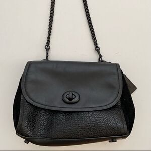 Coach Faye Crossbody ~ Black Leather and Suede with Black Chain
