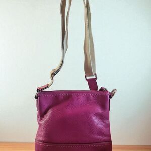 Vibrant fuchsia leather bag with front pocket. Ideal for daily wear.