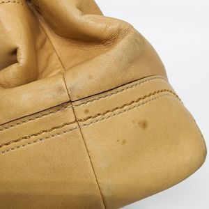 Coach Genuine Leather Handbag, gorgeous camel color, interior zipper and two side pockets.