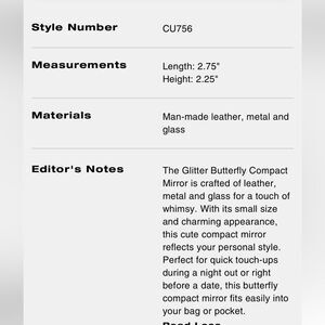 Coach Glitter Butterfly Compact Mirror in Silver Jasmine. Man made leather and metal. New with tags. Sold out online!
