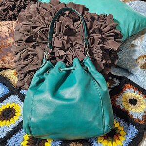 Coach Green Drawstring Calfskin 2WAY Shoulder Bag Purse