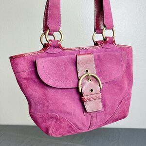 Coach Hampton Bucket Purple Suede Leather Shoulder SOHO Mid Size Tote Bag 9676
