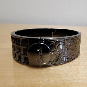 Coach Hinged Signature C and Black Crystal Bangle Bracelet