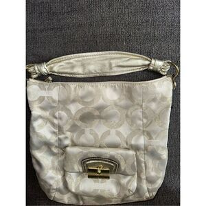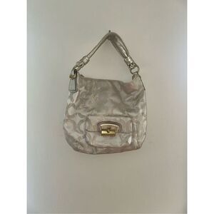 Coach Kristin 15016 Gold Khaki Metallic Op Art Leather Hobo Bag