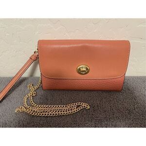 Coach Leather Chain Crossbody Melon/Gold Wristlet Clutch Handbag F31620 NWT