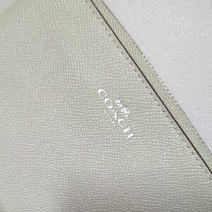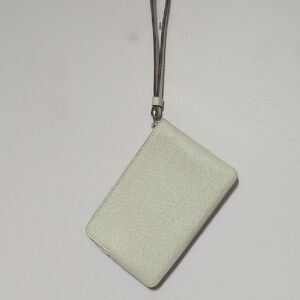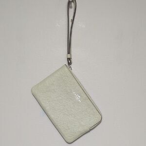 Chic Coach wristlet in light cream/gray. Sleek design with wrist strap. Two card slots.