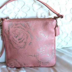Heavenly pink leather with silver embellishment -roses and Coach motif