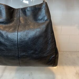 Authentic Coach Madison Phoebe Pebbled Leather Shoulder Bag. Crafted of rich leather, the Madison Phoebe shoulder bag is a versatile design perfect for weekdays and weekends. It's a Coach classic! It secures with a zip-top closure and features an interior multifunction pocket to hold your small essentials. This Coach shoulder bag in black leather exudes timeless elegance with its sleek design and minimal hardware. Crafted from soft, supple leather, it offers a sophisticated look that complements any outfit. Its versatile style makes it a classic choice for various occasions. Interior stunning navy blue sateen interior needs a quick cleaning. Photos are the best description of this timeless Coach bag! Please ask questions and make an offer!