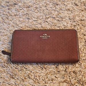Coach Maroon Signature Zip-Around Wallet