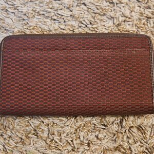 Coach wallet, zip around wallet, maroon Coach, checkered wallet, leather trim wallet, designer wallet, Coach accessories, Coach check pattern, women’s wallet, luxury wallet