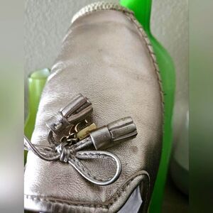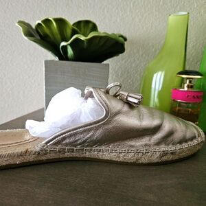 Coach Metallic Leather Mules/Espadrilles with Tassel Bow Accent
