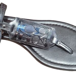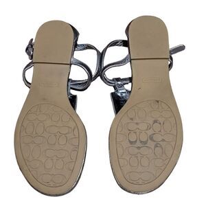 #coach #sandal #t strap #silver #metallic #logo #luxury #summer #dressy #casual #versatile #bold #statement #comfortable #staple #everyday #summer #spring
