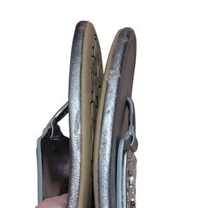 slight damage as seen in photos on side of shoe from pebbled walkway