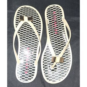 Coach New York "Landon" Gold Bow Beige Flip Flops Size 8B