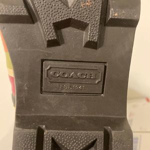 Coach Peony striped rainbow boots with furry top size 7 B. Rubber Rain boots