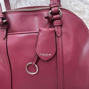 Coach Peyton Cora Magenta Leather Domed Satchel Crossbody Convertible Bag F25671