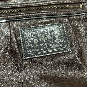 Coach 20384E Poppy Jazzy metallic gold 2-way leather bag. Zip top closure. Gold tone hardware. Ruched side ties. Sateen interior. Minor signs of natural wear - overall excellent condition.
