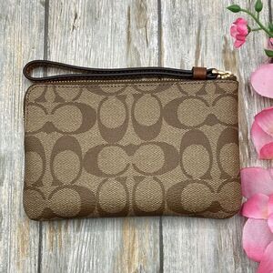 COACH RAIDIAL RAINBOW 🌈 Corner Zip Wristlet Leather Wallet Bag