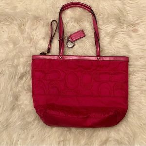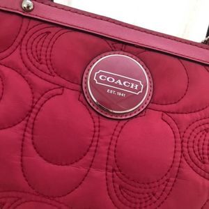 Coach Raspberry Quilted Logo Small Nylon Tote