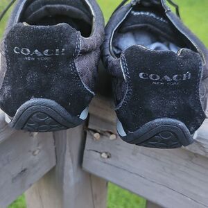 Coach sneakers, signature jacquard, Remonna shoes, black silver trainers, women’s size 8, designer sneakers, casual shoes, streetwear, Y2K Coach shoes