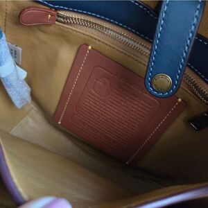 Example of the ultimate in Coach craftsmanship, this iconic silhouette beloved for its simple functionality and purity of form is reimagined in a striking combination of colorblocked leathers witn a genuine python strap.
