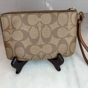 Coach Signature Logo Leather Wristlet Clutch
