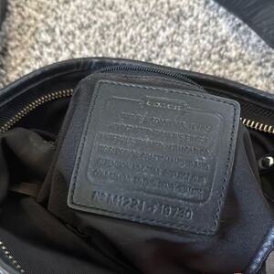 Stylish Coach crossbody with signature pattern. Features chain detail and adjustable strap.