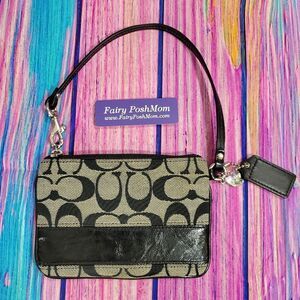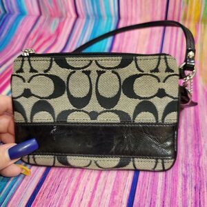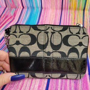 Coach Signature Kissing C's Black and Tan Wristlet or Wallet