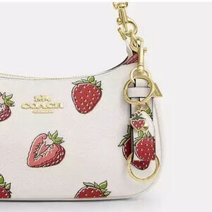 Coach Strawberry Trigger Snap Bag Charm In Signature Canvas Charm Key Holder