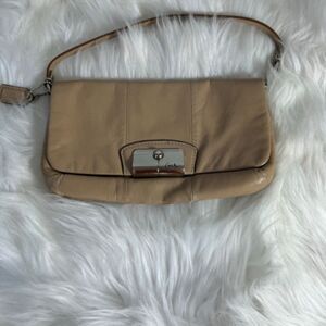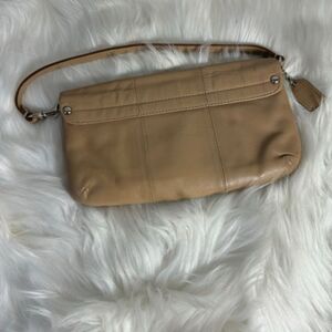 This measures 9" wide, 1.5" deep, 5" high, and has a strap drop of 4.5". In very good pre-owned condition. Normal wear and tear noted, but no flaws or damage other than an ink stain on the interior lining, shown in last photo. Please review pictures and feel free to ask any questions or for more pictures prior to purchasing.
