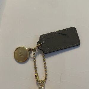 Nice gold tone coach keychain, black tassel, and signature. Coach tag on chain. Small neck on back of gray luggage tag per picture.