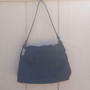Vintage Coach Style C1J-7424 Authentic black 90's Mercer Microfiber Coach with leather strap Coach belt buckles purse.