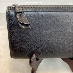 Authentic Coach Trifold Leather Full Sized Wallet with Snaphead Button Flap Closure is a vintage piece in EUC. This sleek Coach wallet in black leather features a minimalist design with a structured silhouette and a flap closure. Its timeless appearance makes it a versatile accessory for any occasion. There is a tremendous amount of storage inside this full sized wallet. You can store everything in one wallet. Photos are the best description and condition of this timeless Coach classic wallet. Aprprox. 7.75" x 4" Make an offer.