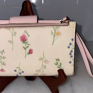 Coach Wallet Wristlet Floral Wildflower Saffiano Leather Phone Case Clutch Pink