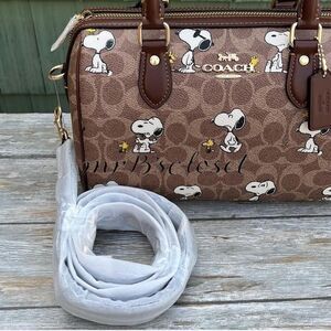 Coach X Peanuts Rowan Satchel Bag In Signature Canvas With Snoopy Print
