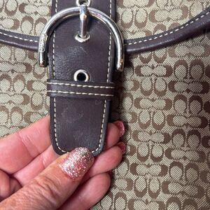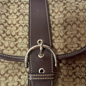Coach Y2K Brown/Light Brown Signature Canvas Bag. Elegant brown designer shoulder bag with a stylish pattern. Perfect for any occasion. Has a few marks on leather as shown in picture. Excellent used condition.