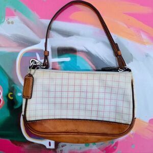 Coach Y2K Demi Blue/Pink Plaid Canvas and Leather Vintage Shoulder Bag