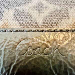 Coach cream canvas wristlet with leather trim.