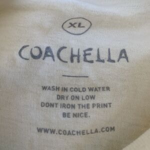The Coachella 2015 Graphic T-Shirt in Men's XL is a multicolor shirt featuring a crew neck and short sleeves. Made from a blend of polyester, rayon, and cotton, this regular fit t-shirt is machine washable and perfect for the summer, fall, and spring seasons. The shirt showcases a graphic print of the music festival lineup including Drake, ACDC, and other popular acts, making it a stylish and comfortable choice for any music lover or festival attendee. Unisex. No fabric tag. New without tag. Line up in photos.